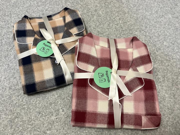 私は肌触りがサラッとしたパジャマが好みなのでサテンと迷ったけど、結局綿100%のフランネル生地にしました。