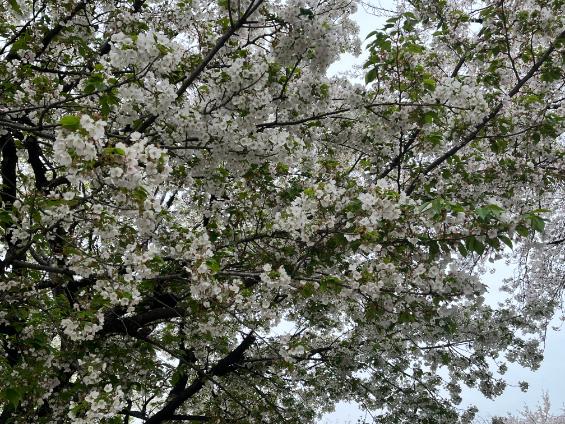 この木は見事に満開だったけど、曇り空だとなんだか寂しげな印象ですね。