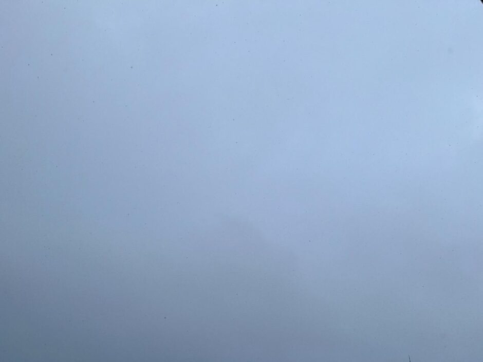 薄暗い空。雪が舞っています。