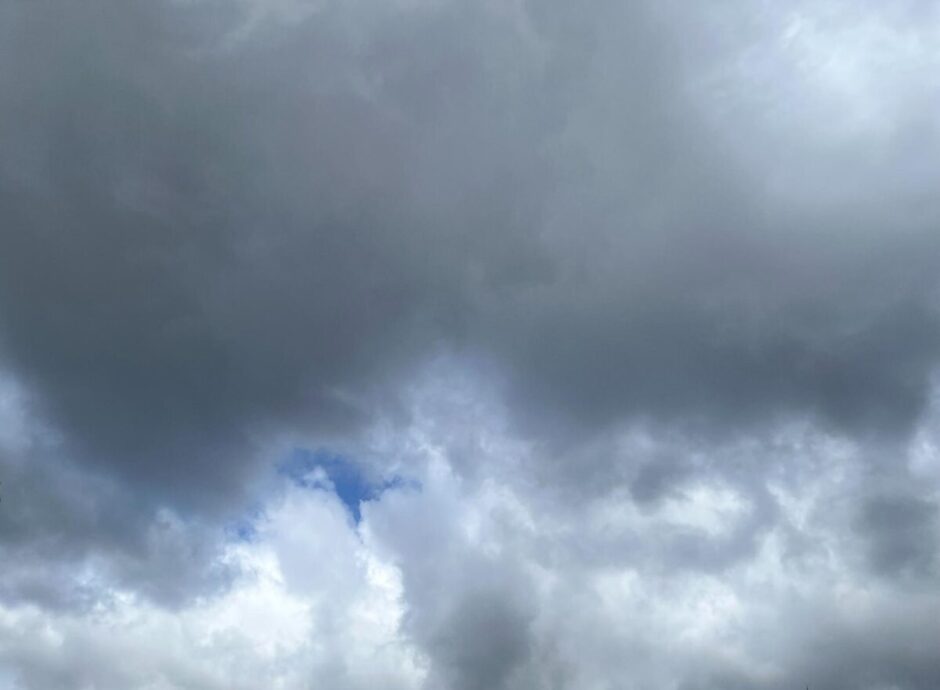 遠くに青空が見えるものの厚い雲が優勢な空。